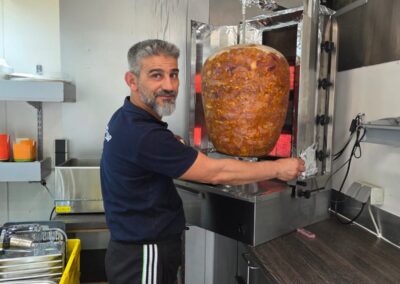 Außerdem bieten wir einen Lieferservice für Firmen in einem Umkreis von bis zu 10 km (je nachdem an welchem Tag wir wo sind) rund um unseren Standort an. So können Sie sich bequem zurücklehnen und sich und Ihre Angestellten mit unseren leckeren Speisen verwöhnen.